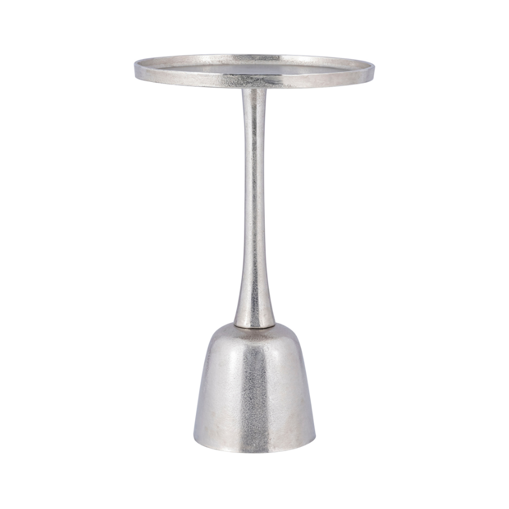Bring timeless style and everyday function into your home with our Nickel Side Table. Crafted with a sleek pedestal base and a round tray-style top, this table combines sculptural elegance with practical design. The nickel finish adds a touch of vintage sophistication, making it the perfect accent for both modern and transitional interiors. Compact in size yet striking in style, this side table works beautifully as a living room accent table, bedside table, or reading nook companion. Its sturdy metal construction ensures durability, while the minimalist silhouette keeps it versatile for a variety of spaces.