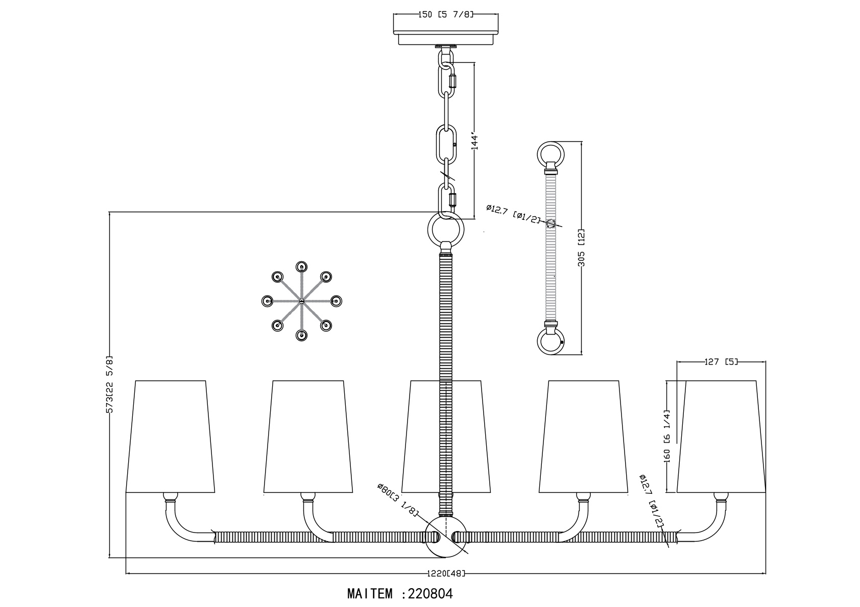 Add a touch of refined elegance to your home with our modern chandelier. This sophisticated fixture features a harmonious blend of black and gold finishes, creating a chic and versatile design. The chandelier's six arms extend gracefully from a central hub, each supporting a crisp, white fabric shade that diffuses light beautifully. The black wrapped detailing on the arms and stem adds a modern twist, while the gold accents provide a luxurious touch. Perfect for dining rooms, living spaces, or entryways, this chandelier effortlessly combines style and functionality. Illuminate your space with this exquisite piece, enhancing your decor with its timeless appeal and contemporary flair.
