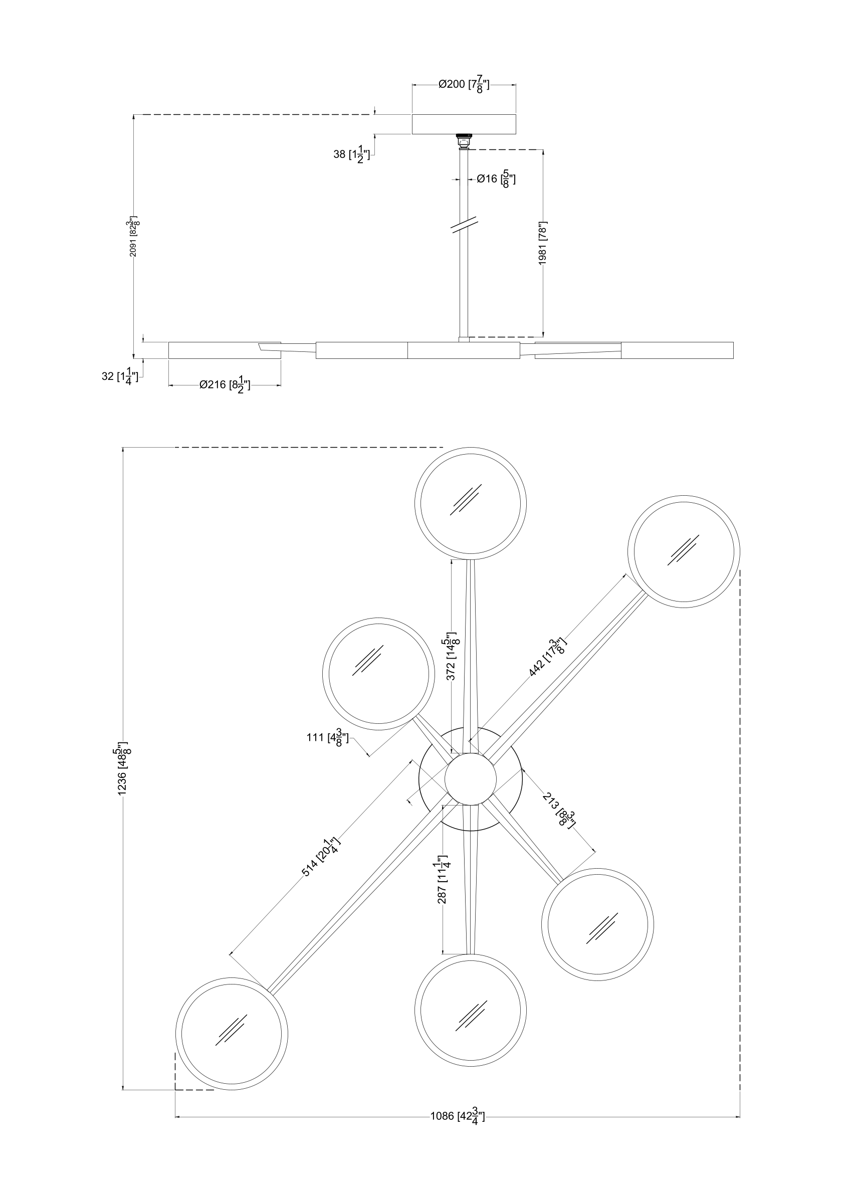 Striking in its simplicity, this chandelier combines modern geometry with timeless elegance. Six perfectly round lights extend from a central brass hub, casting a warm, even glow that transforms any room into a haven of sophistication. Its streamlined design and golden finish create an effortless blend of form and function, making it a statement piece that’s both bold and understated. Ideal for contemporary and transitional spaces, this chandelier offers a touch of luxury that’s as captivating as it is calming, inviting you to bask in its soft radiance and refined style.