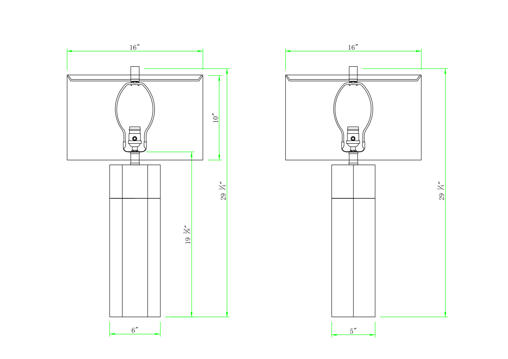 - H29.75in x W16in x D16in