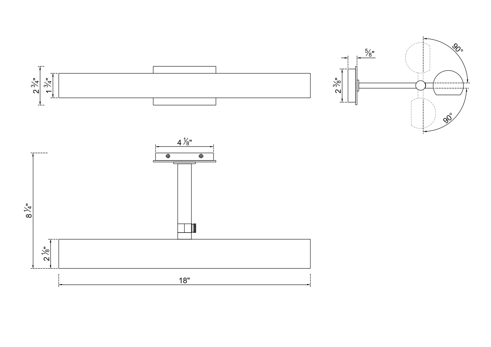 - H2.75in x W18in x D8.25in